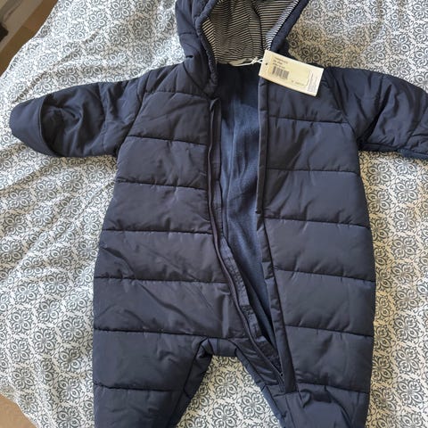 Petit Bateau heldress for barn i størrelse 68. Dressen er i blå polyester med stjernemønster og er egnet for unisex. Den har hette og integrerte føtter. Innsiden har mykt, loddent fôr i hette og overkropp som gir ekstra varme og komfort. Glidelås foran gjør den enkel å ta av og på. Passer godt som ytterdress til de minste på kjølige dager.