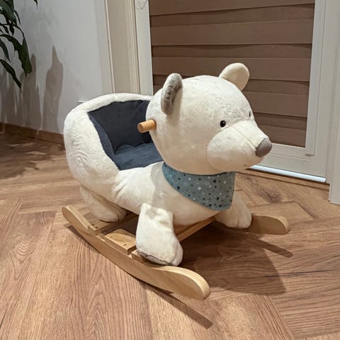 Selger en søt og myk gyngende teddybjørn til barn.