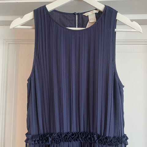 Lang kul kjole fra H&M i dyp mørk blå med mønster, til selskap eller spesielle anledninger.
