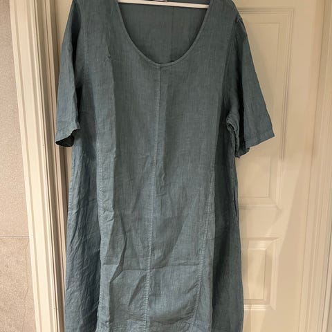 Fint brukt grønn linkjole. Veldig behagelig på, romslig A fasong med fine detaljer.
