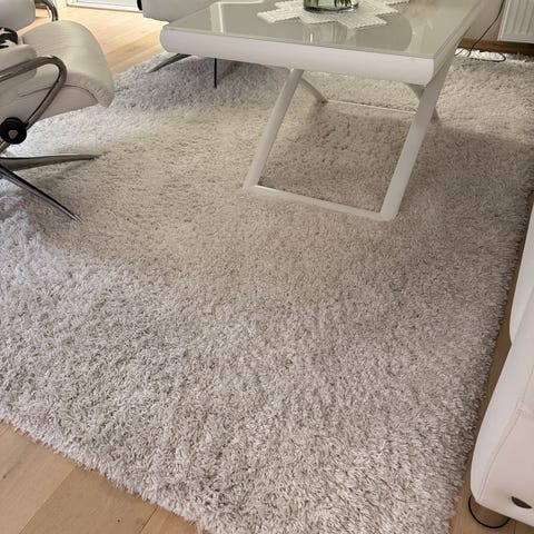 Har vært katt på teppet og har noen synlige bruksmerker, men fortsatt mye bra teppe igjen!