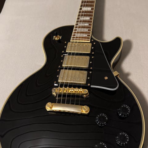 Nydelig utgave av en les paul custom shop. Meget behagelig hals, resonant gitar og låter kuler og krutt.
