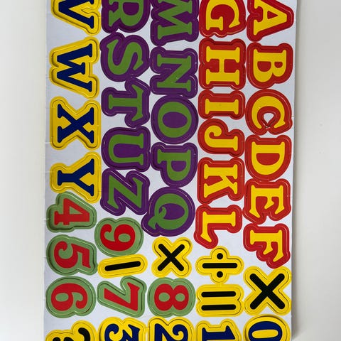Selger et pluggbrett med tilhørende bokstaver for å lære alfabetet. Kjekk "lek og lær".