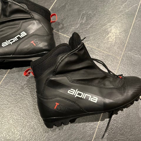 Alpina T5 Plus langrennsstøvler i svart. Støvlene har overtrekkslokk med glidelås som beskytter snøringen, samt borrelåsstropp over vristen for bedre tilpasning. Sålen er tilpasset klassisk langrenn med standard tur-/treningsbindinger. Overdelen er i syntetisk materiale med tekstilfôr rundt ankelpartiet. Egnet til klassisk langrenn og turbruk.