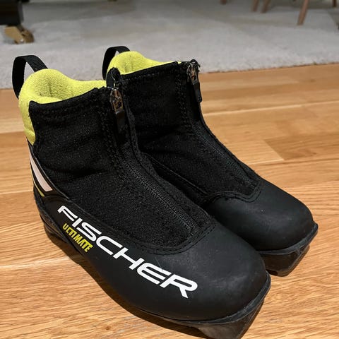 Fischer langrennsstøvler i svart og gul farge. Støvlene har glidelås foran og høyere mansjett for bedre støtte rundt ankelen.