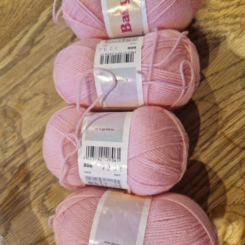 6 nøster Lana Grossa Cool Wool Bebe merino. Fargen er litt mer lilla enn på bildet. 250 kr.
