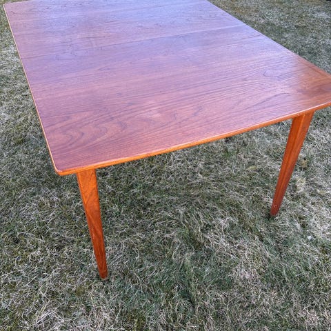 Praktisk spisebord som kan tekkes ut men her mangler innleggsplater