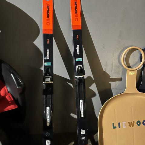 Atomic Pro Skintec felleski langrenn i lengde 195 cm. Svært lite brukt. Beregnet for vekt 70 kg. Klassiske felleski med integrert fell under midtpartiet, som gir feste uten behov for smøring. Skiene har NNN-kompatible bindinger fra Atomic montert. Enkle å bruke og passer godt for den som ikke er i skiløypa hver dag. Mørkeblå/grå farge.