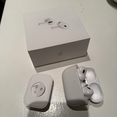 Apple AirPods Pro 2 trådløse ørepropper i hvit farge. Modellen leveres med ladeetui som støtter trådløs lading og lading via Lightning-port. Øreproppene har silikonplugger og aktiv støydemping, samt transparensmodus. Passer til bruk med Apple-enheter som iPhone, iPad og Mac via Bluetooth-tilkobling. Selges da jeg har kjøpt den nye modelen:) alt funker som det skal følger me ekstra ørepropper og lader