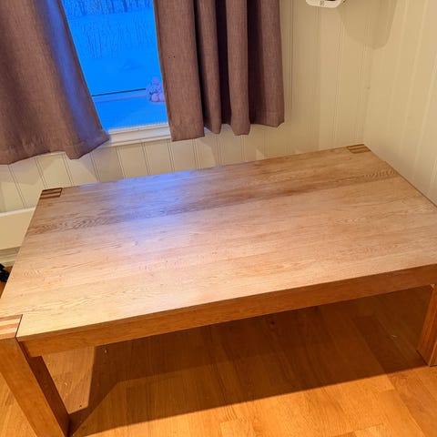 Oljet blank, og helt uten riper og skader bortsett fra på det ene benet (se bilde).