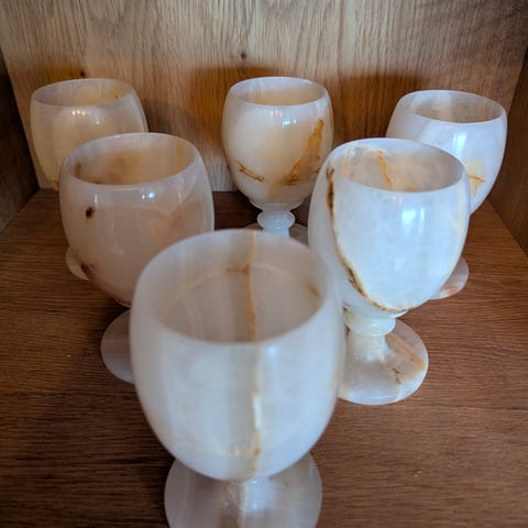 Søkeord: onyx, oniks, stein, steingods, brunt, grønt, eggeglass, glass, kopper, beger, kunst, deco, stone, trendy, vintage.