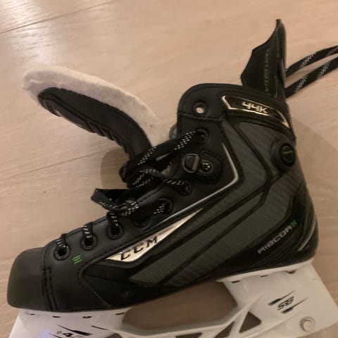 CCM ishockeyskøyter i størrelse 37. Skøytene har svart overdel med lisser og hvit skøytestål. Egnet til ishockey og annen bruk på is for barn eller mindre føtter. Såle og hælkappe gir støtte rundt ankelen under bruk på isen.
