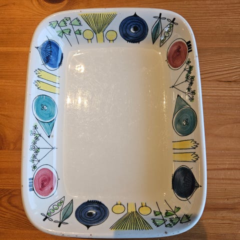 Selger et komplett te-servise med te-kanne, sukkerskål, 6 asjetter, 7 fat og 6 kopper., fra Figgjo