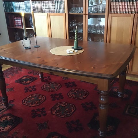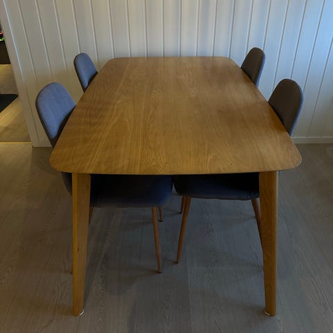 Spisebord med 2 ileggsplater + 6 spisestoler