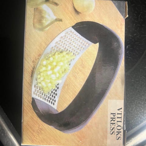 Uåpnet hvitløkspresse, kjøpt i Italia