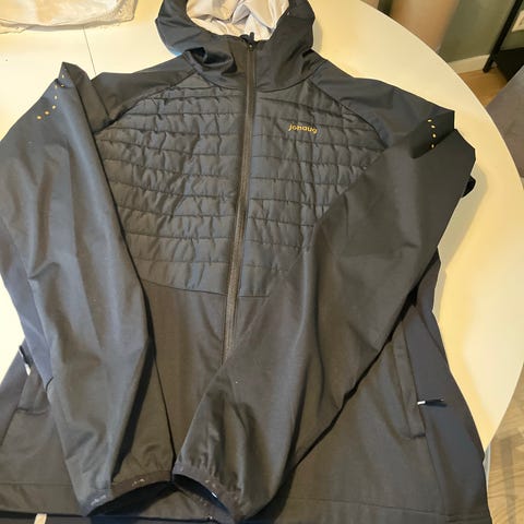 Johaug jakke i størrelse XL, liten i størrelsen. Jakken er i en nydelig lys arikosfarge med vatterte felt og quiltede partier. Høy krage og avtagbar hette. Hel glidelås i front. Mykt stoff på innsiden langs nedre kant for ekstra komfort. Egnet som ytterjakke til hverdagsbruk, ski, tur og trening.