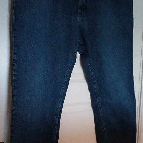 Lee jeans for herre i blå denim. Rette ben. Buksen har livvidde W34 og lengde L32, som tilsvarer størrelse XL.