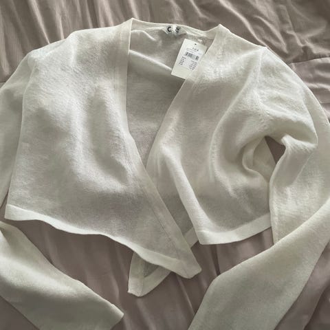 Ballett bolero i hvit som knyttes bak. Str er opprinnelig 12, men passer 7-9 år. Pris; 150kr