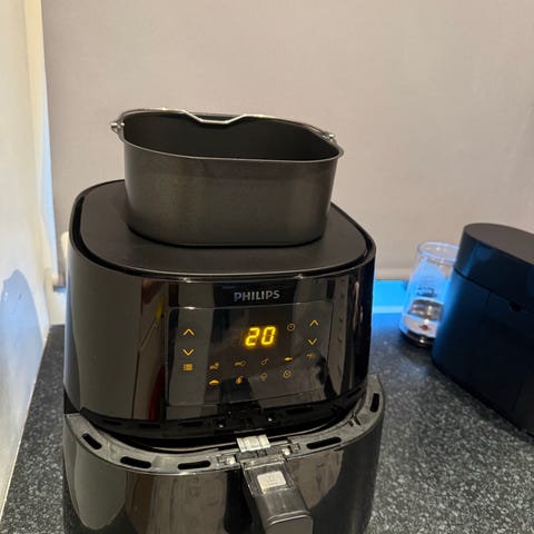 Cosori Premium Smart airfryer 5,5L svart. Luftfriterer med digitalt kontrollpanel på toppen og kurv i front med håndtak. Kapasitet på 5,5 liter egnet for tilberedning av ulike typer mat med lite eller ingen olje. Enheten har flere forhåndsinnstilte programmer og justerbar temperatur og tid. Farge svart, kompakt bordmodell som plasseres på kjøkkenbenk.