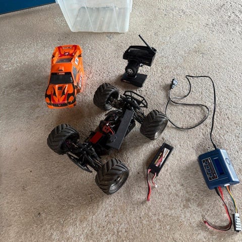 Det følger med Spektrum pistolgrep-fjernkontroll med rattstyring og gassbrems‑trigger. Fjernkontrollen har flere justeringsmuligheter via brytere og knapper på oversiden. Bilen drives av elektrisk motor og har batteriplass i midten av chassiset. Egnet for hobbybruk og kjøring på variert underlag som grus, stein og jord.