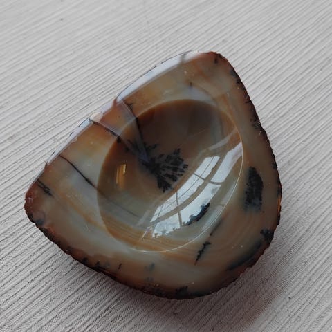 Steinene er polerte og glatte, perfekte for samlere eller som et unikt dekorelement i hjemmet.