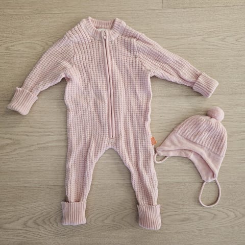 Lillesøster har vokst ut av favoritten fra Lanullva. Kjempegod ulldress med tilhørende lue i str 40/41. Perfekt som vogndress på kalde dager eller til og fra bhg. Kan brukes lenge pga ermer og ben som kan brettes ut.