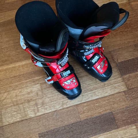 Nordica Firearrow T2 alpinstøvler for barn i rød og svart farge. Støvlene har to justerbare spenner i plast/metall for god tilpasning rundt fot og legg. Myk og polstret innersko gir komfort og støtte. Sålen er profilert for godt feste ved gange på snø og is. Egnet til vanlig alpint bruk i alpinanlegg for barn som trenger stabile og brukervennlige alpinstøvler.