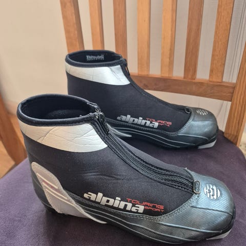 Alpina langrennsstøvler i svart farge. Støvlene har høy ankelstøtte og glidelås med beskyttende klaff foran. Polstret innside og hælkappe gir støtte og komfort.