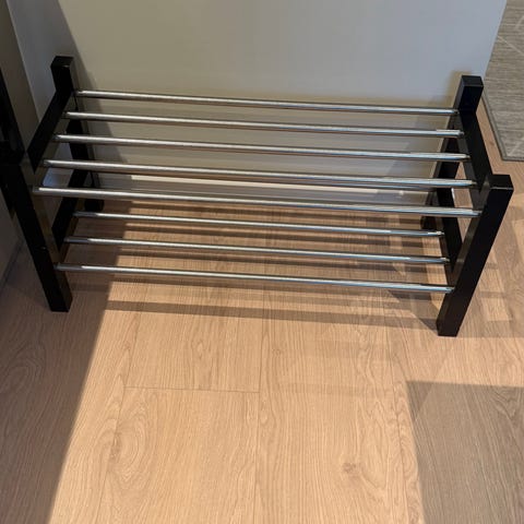 Grå/svart tre og metall. Kjøpt oktober 2025