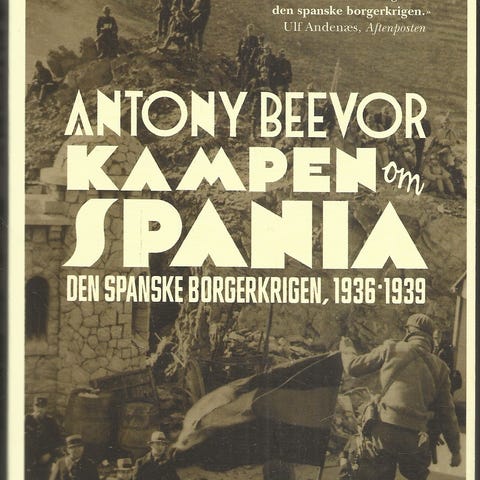 Antony Beevor - Kampen om Spania. Oversatt til norsk av Arne-Cardten Carlsen, utgitt av Damm i 2006. Innbundet, 622 sider + minst 20 kart. Dette verket om den spanske borgerkrigen 1936–1939 er illustrert med historiske fotografier. Boken gjennomgår bakgrunn, hendelsesforløp og konsekvenser av konflikten i Spania, med vekt på militære operasjoner, politiske forhold og internasjonal involvering.