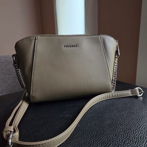 & Other Stories håndveske i kunstlær for dame. Vesken har to korte hanker og en avtakbar, justerbar skulderrem. Den lukkes med glidelås på toppen og har en utvendig glidelåslomme på baksiden. På forsiden er det dekorativ sløyfe og anheng med stjerneformet detalj. Passer til daglig bruk og har plass til nødvendigheter som lommebok, mobil og småting.