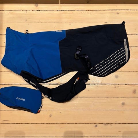 Nonstop regndekken (trekking) svart i størrelse 50. Dekkenet er svart med refleksdetaljer og justerbar stramming i ved hals, nakke og under magen. Egnet til tur og friluftsbruk. Nesten ikke brukt. Har hull til selen
