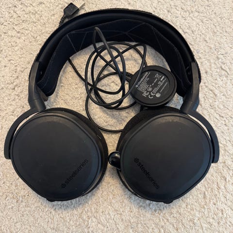SteelSeries Arctis Pro Wireless gamingheadset i svart. Trådløst headset med lukket over-ear design og polstrede øreputer. Leveres med trådløs sender/basestasjon som gir tilkobling til blant annet PC og PlayStation (ifølge originalemballasjen). Headsettet har justerbar hodebøyle og integrerte kontroller på ørekoppene. Egnet for gaming og bruk med kompatible enheter som støtter SteelSeries Arctis Pro Wireless-systemet.