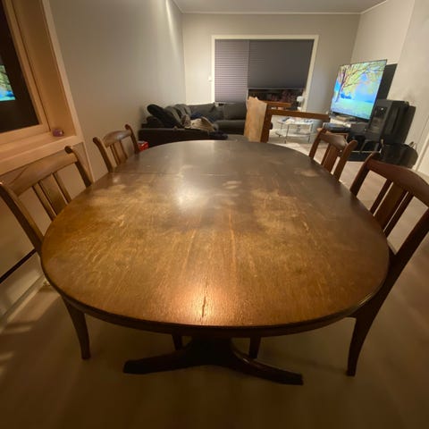 Spisebord har to stk ileggsplate . Tilsammen kr 5000. Bud mottas. Må hentes i Sandviken