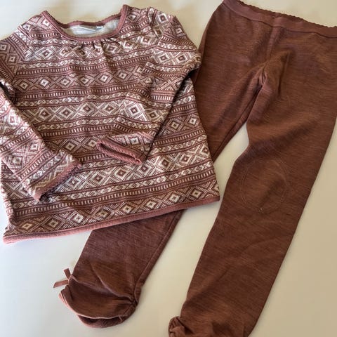 Name it heldress i merinoull for barn, brukt som pysj. Hel og fin unntatt en flekk bak, se bilde.