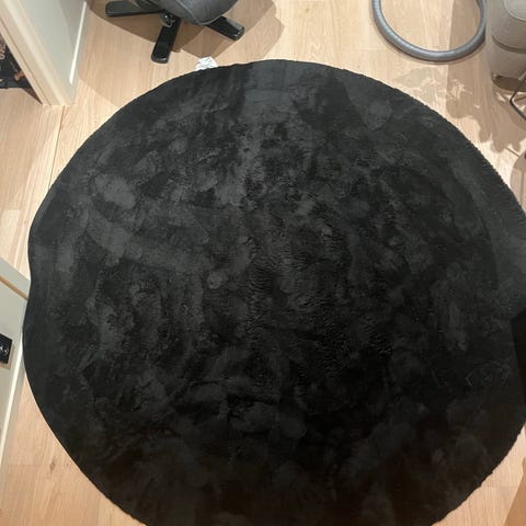 2 runde tepper og gardiner i lilla- teppe 80cm diameter