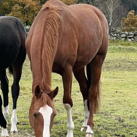 Snill og god varmblodshoppe selges. Hun er en tidligere travhest, men hun har blitt ridd masse i dressur riding som en del av løpstreningen da hun gikk løp. Hun har ikke startet løp på 3 år nå, men har blitt mamma 2 ganger siden da. Siden vi ikke ønsker flere føll på henne, ønsker vi derfor å selge henne. Hun er en utmerket ridehest, og er veldig veldig god med sine humrelyder når du kommer i stallen på morgenen. Hun er veldig snill og grei å sko, og er rolig og fin med veterinær når det trengs. Ei hoppe med et herlig gemytt. Hun elsker banan og eple, men kanskje liker hun banan best hehe.