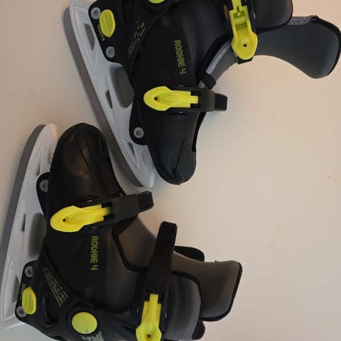 Pent brukte Graf Rush skøyter for barn i størrelse 31-34. Størrelsen justeres lett ved å trykke på knapp som er vist på siste bilde og trekke skøytene ut eller inn. Stødige og varme.