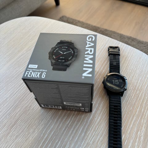 Selger en pent brukt Garmin Fenix 6 sapphire med ekstra reimer. Veldig bra batteri tid.