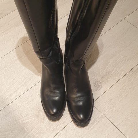 Helt nye støvletter. Kraftig såle, svarte, vid i skaftet.