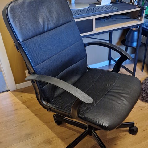Gir bort ein hvit kontorstol då den bare blir ståenes