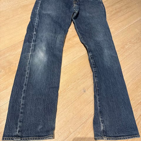 Levi's jeans for herre i størrelse M med livvidde W30/L32. Buksen er i blå denim laget av bomull. Klassisk femlommersmodell med glidelås- eller knappelukking foran (se bilder). Passer til hverdagsbruk og kan kombineres med ulike overdeler for et enkelt og nøytralt uttrykk.