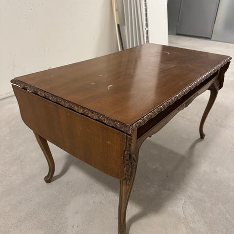 Polstret krakk i brunfarget treverk. Setet er rektangulært med tekstiltrekk i nøytral brun tone og synlige nagler langs kanten. Understellet har fire buede ben med utskårne detaljer. Passer som ekstra sitteplass eller som liten fotskammel i stue, gang eller soverom. Pianokkrakk. Kommer fra min oldemors hus i Sandviken i Bergen, aner ikke alder, annet enn at den er gammel. Trenger litt kjærlighet og omtanke. Aner ikke verdi, men lufter en sum. Vi flytter, og selger unna ting som står i bodene.