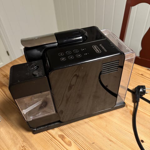 Lite brukt kaffemaskin fra Nespresso. Selges fordi den blir for lite brukt, men den lager veldig god kaffe latte og cappuccino.
