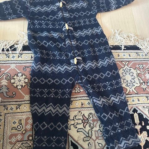 Hel varm dress i ull fra Joha strl 86/92. Med glidelås og folding for å brette over føtter og hender hvis ønskelig.