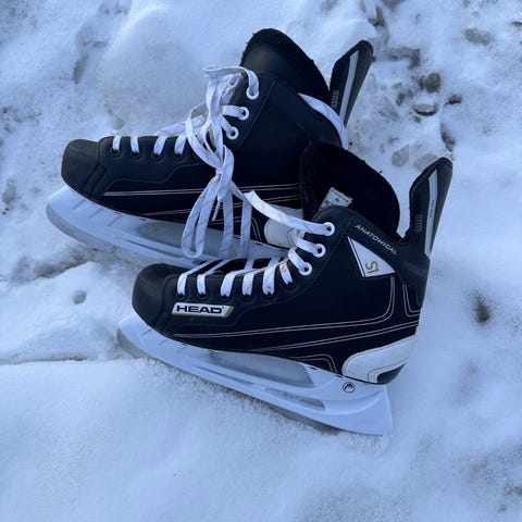 Montana ishockeyskøyter i størrelse 42. Klassiske svarte ishockeyskøyter med snøring og polstret pløse. Skøytene har hvit skøytestålholder og stålblad tilpasset ishockeybruk. Egnet for bruk på isbaner til trening eller fritidsbruk i ishockeysporten.
