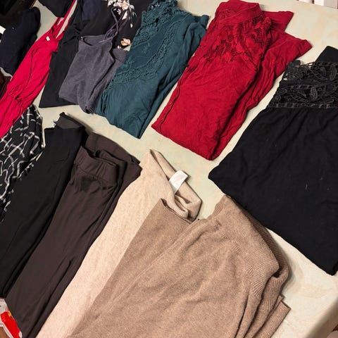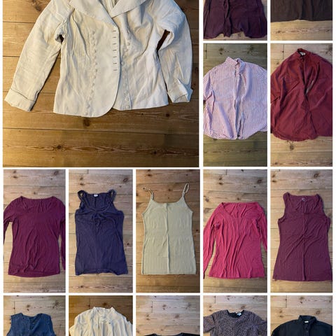 Denne klespakke inneholder 17 plagg i Str XL (eller tilsvarende). Pakken inneholder kjoler, topper, gensere, Poncho og skjerf fra merker som Noa Noa, part two og Tif Tiffy. Klærne er for det meste veldig pent brukt, noe også ubrukt med lapp på. Verdien på klærne ligger på mange tusen, så her kan det virkelig gjøres et kupp! Jeg selger flere klespakker, så det er bare å kikke om det kan være av interesse. Ved kjøp av to klespakker kan de sendes i samme posten-pakke. Denne klespakken inneholder:
