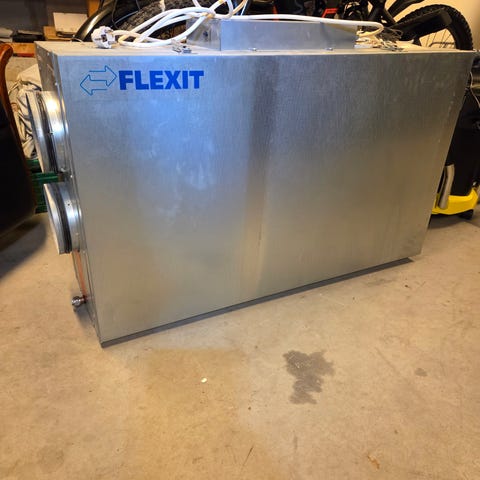 Flexit Pro7 All-in-one ventilator og Flexit VH125 veggjennomføring.