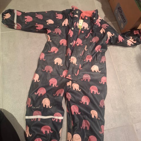 🌧️Regndress fra CeLaVi med et varmende fleecefôr. Den har en avtagbar hette og elastiske mansjetter for optimal passform. Perfekt til utendørs lek på kalde dager.