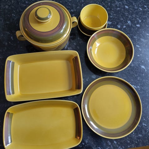 Serveringsfatene, boller/store skåler og sausnebb ser veldig fint ut så vidt jeg kan se.